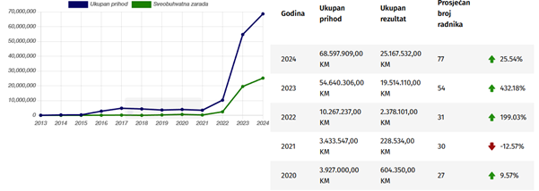 Koncesioni ugovori u ova dva slučaja naknadno su dodijeljeni, a po podacima koje je TI BiH dobio od PU RS, ova firma u vlasništvu odbornika SNSD-a iz Teslića, platila je 19.860 KM naknade u 2023. godini i još 322.782 KM u 2024. S druge strane, javnost nema uvid u ekonomsku korist koju ova firma ostvaruje eksploatacijom mineralnih sirovina, a njeni javno dostupni finansijski izvještaji pokazuju da je u zadnje dvije godine prihod ove firme porastao skoro sedam puta, kao i dobit koja je iznosila 25 miliona KM.